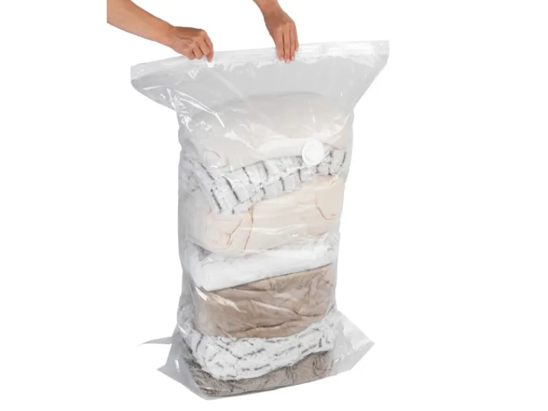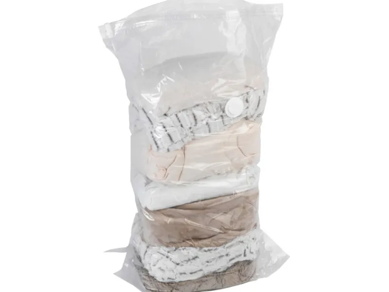 Der Vakuum-Beutel mit der Größe L (70 x 100 x 35 cm) ist mit einer praktischen Standfläche für größeres Fassungsvermögen ausgestattet. Die große Vakuum-Tasche bietet ideale Aufbewahrungsmöglichkeiten sowohl für Saison-Bekleidung oder Bettdecken als auch für Gartenpolster oder einen Kinder-Autositz. Das Volumen der Decken oder Polster wird auf ein Minimum reduziert. Staub, Nässe und Motten werden in diesem geschützten Behältnis von dem Inhalt fern gehalten.