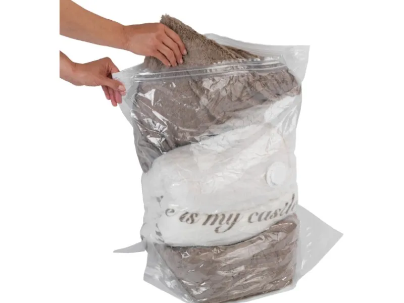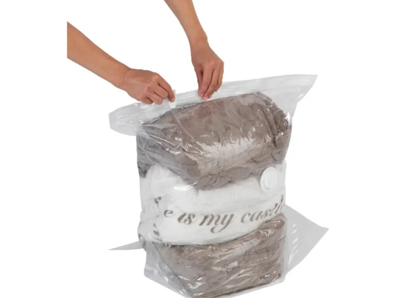 Der Vakuum-Beutel mit der Größe S (60 x 50 x 35 cm) ist mit einer praktischen Standfläche für größeres Fassungsvermögen ausgestattet. Der Kleidersack bietet ideale Aufbewahrungsmöglichkeiten für Saison-Bekleidung oder Bettdecken. Das Volumen der Winter- oder Sommersachen wird auf ein Minimum reduziert. Staub, Nässe und Motten werden in diesem geschützten Behältnis von der Kleidung fern gehalten.